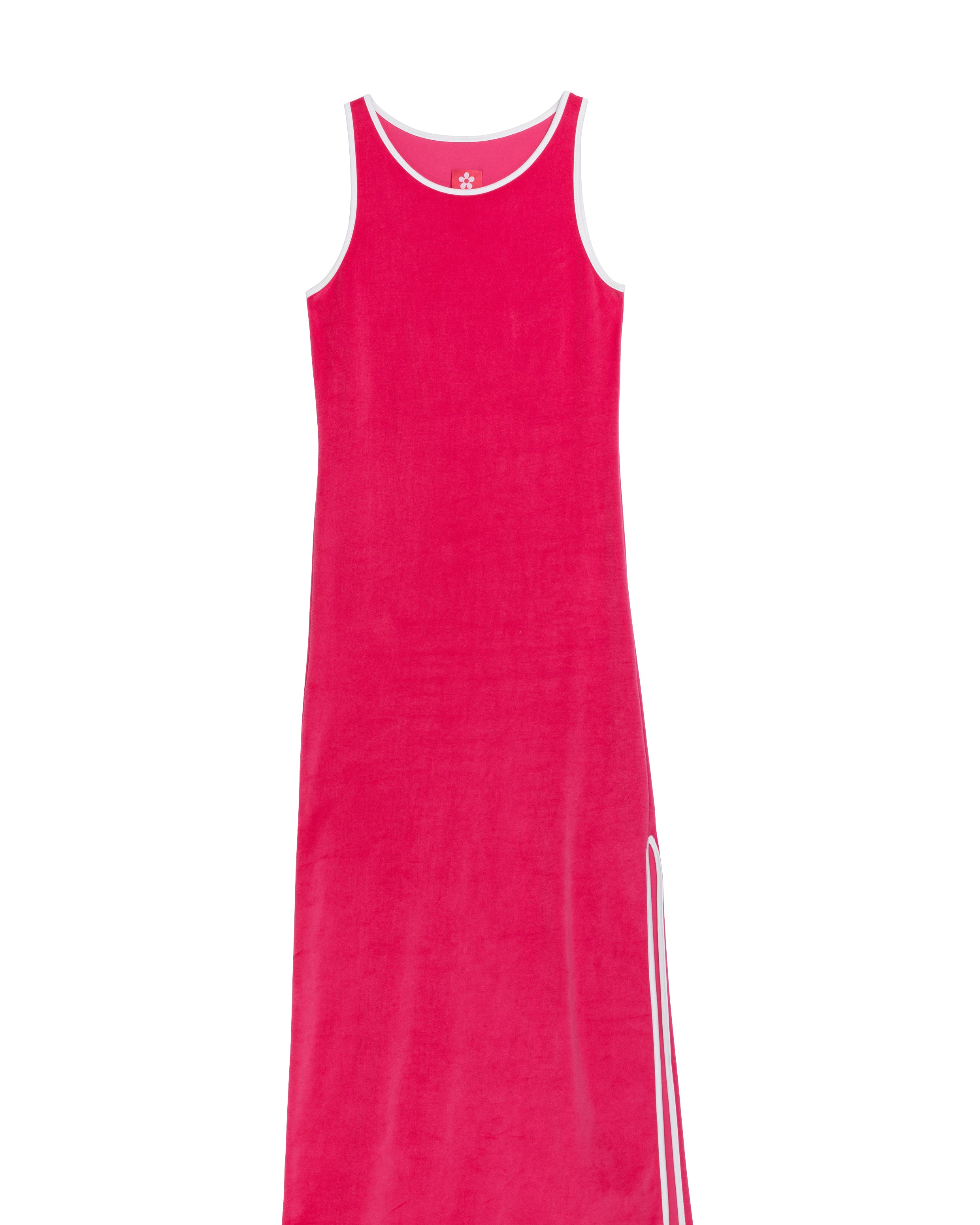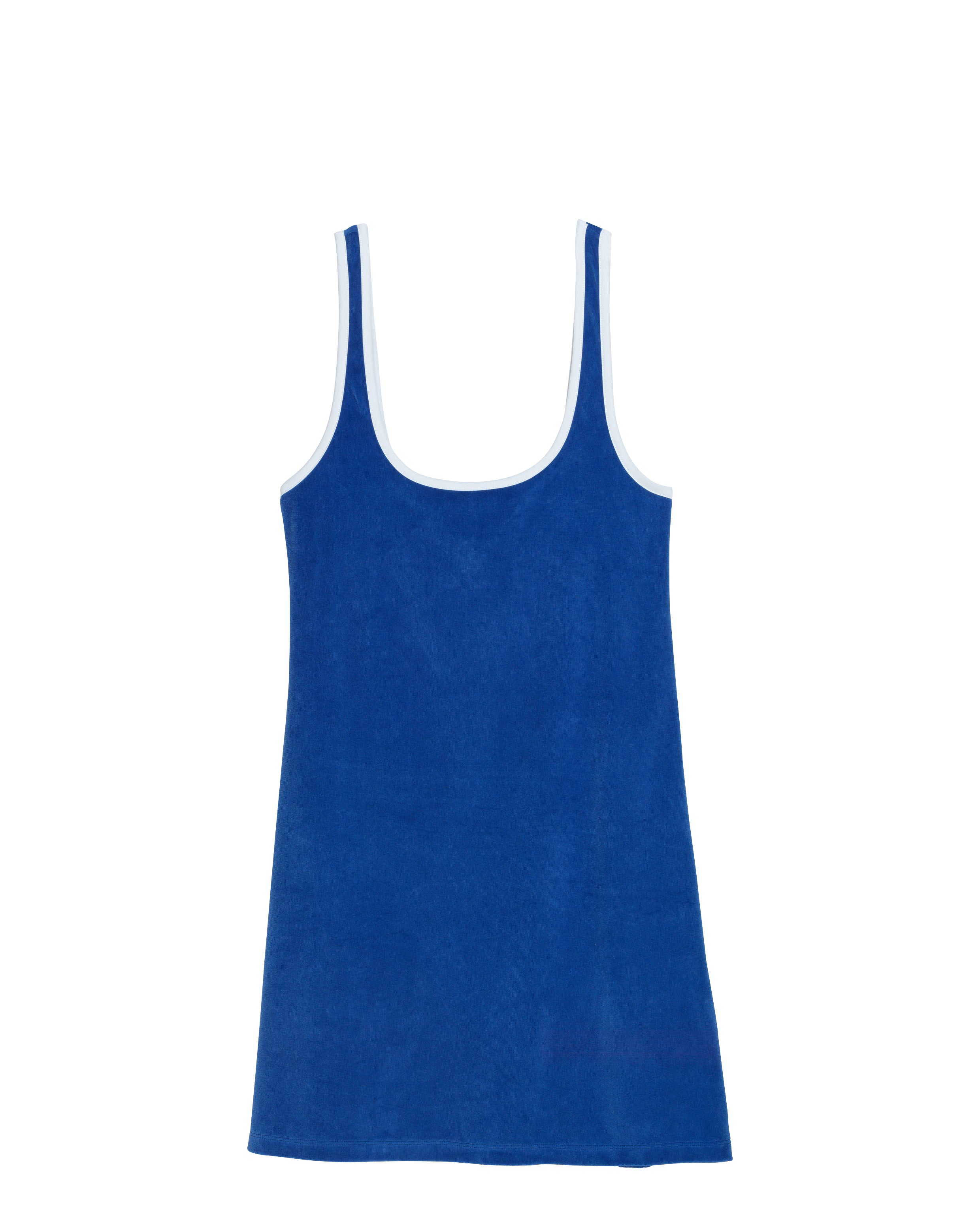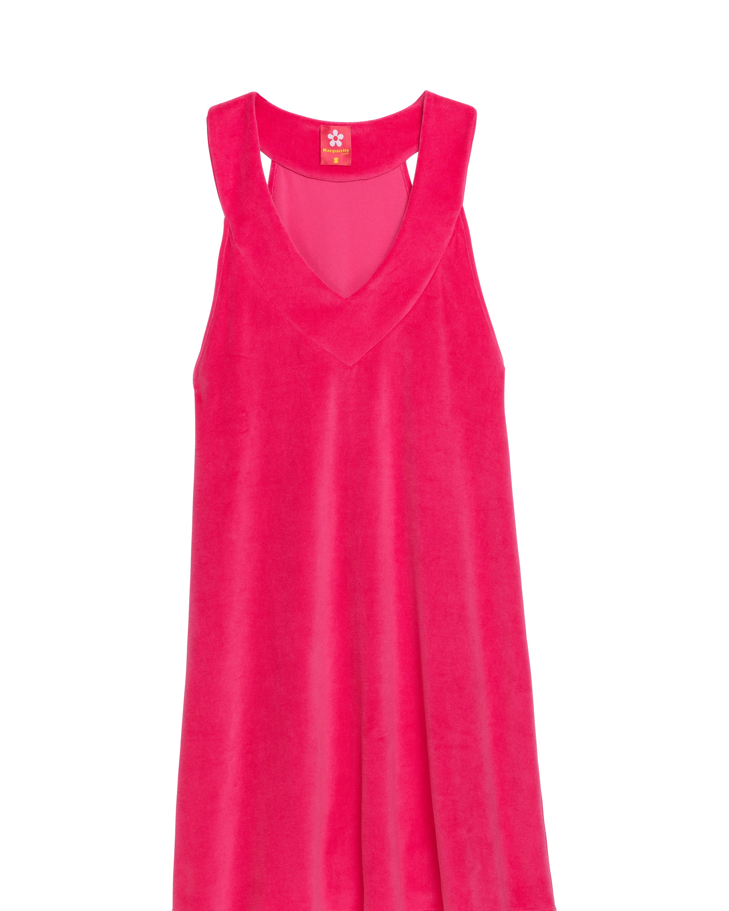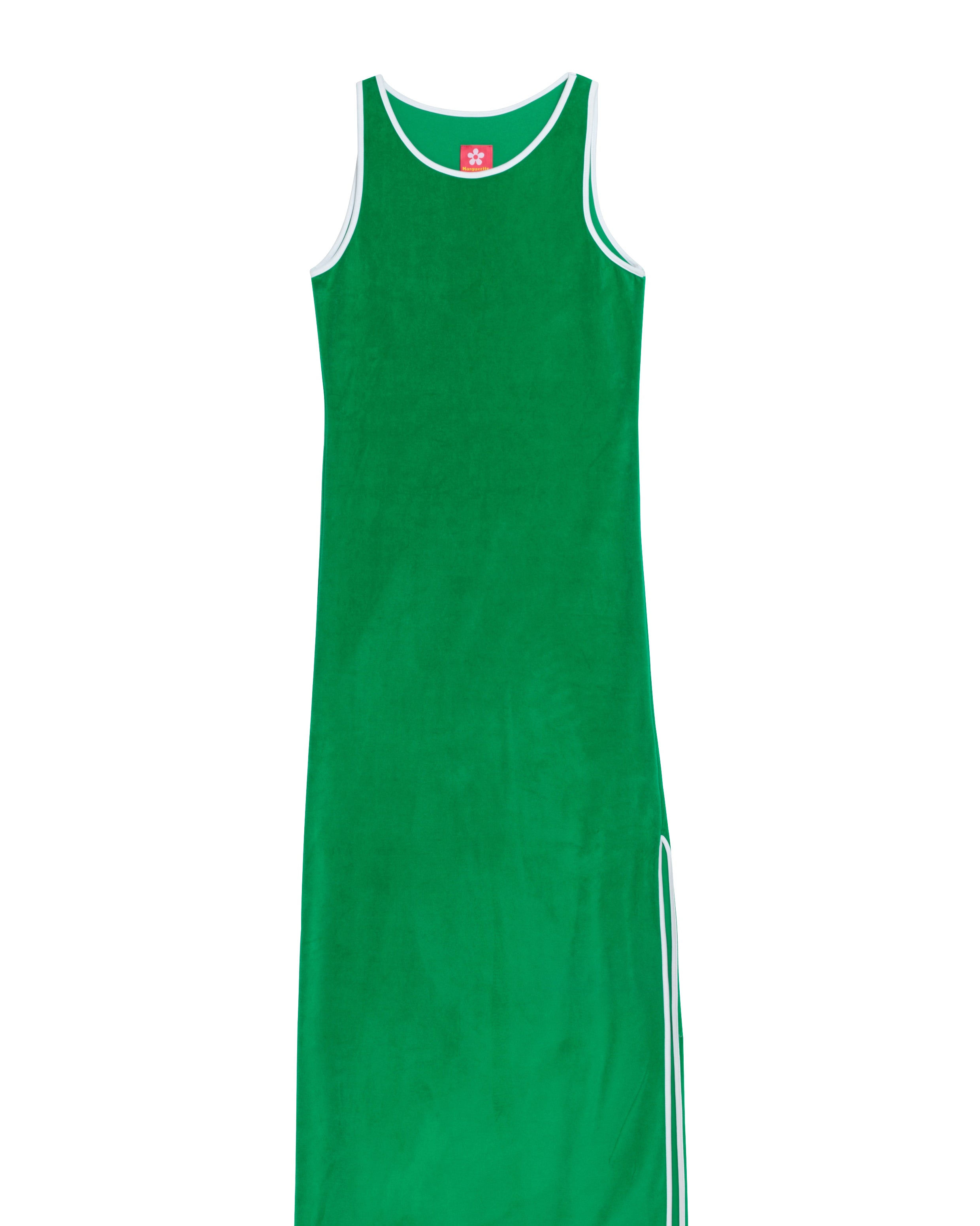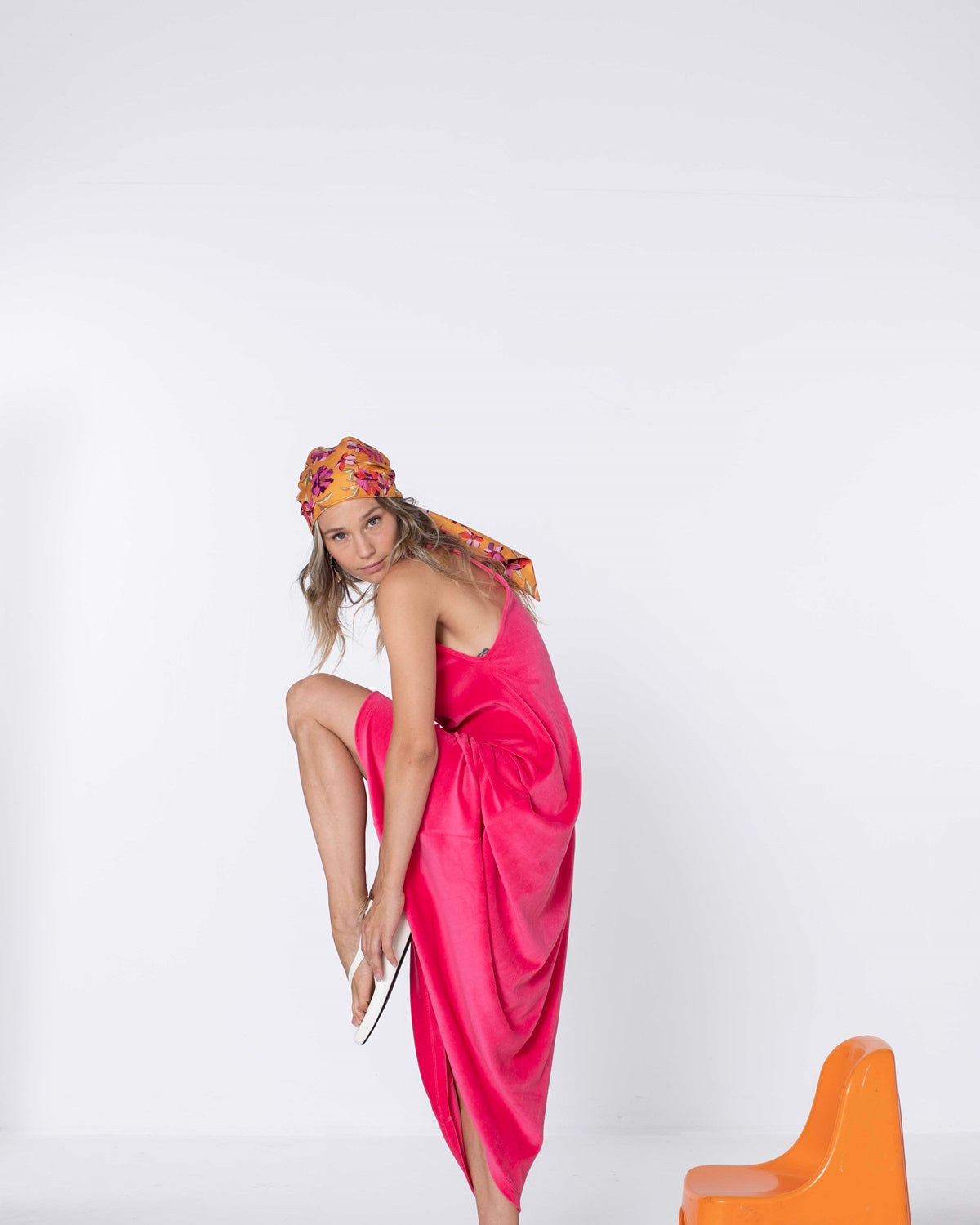 Robe Alassio, sizing regular, longue, portefeuille, décolleté en V, se noue à la taille, couleur unie, fleur marguerite brodée dans le dos.